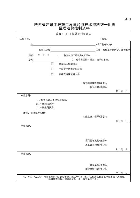 表格名称:表B4-1 监理B-11 工程款支付报审表