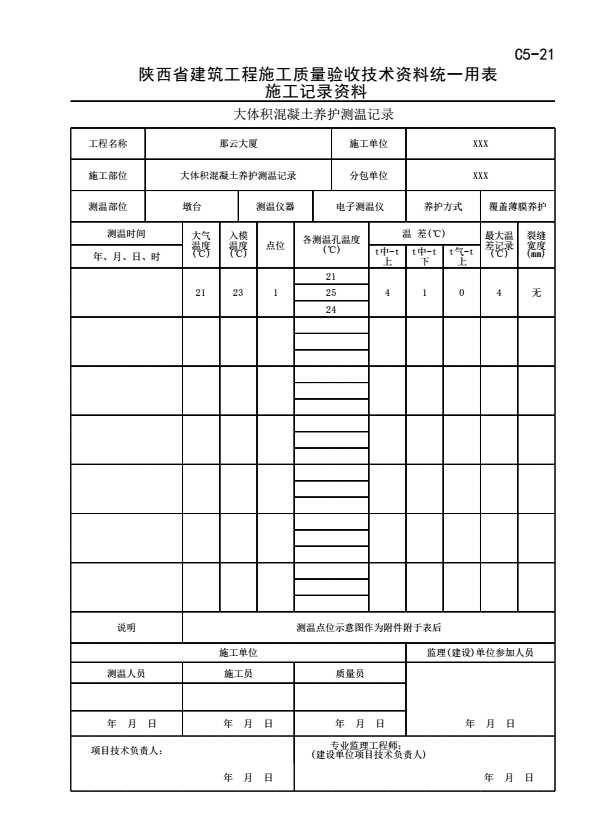 C5-21 大体积混凝土养护测温记录