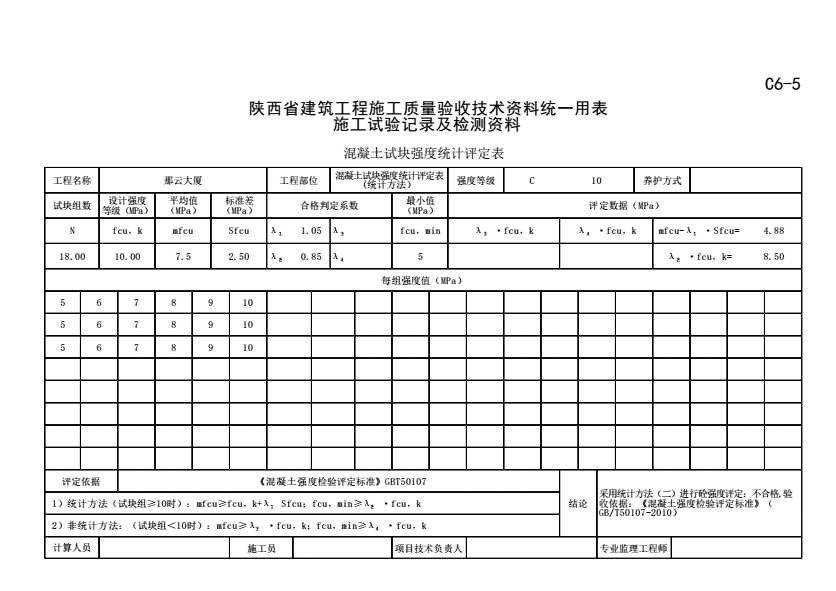 C6-5 混凝土试块强度统计评定表(统计方法)(1)