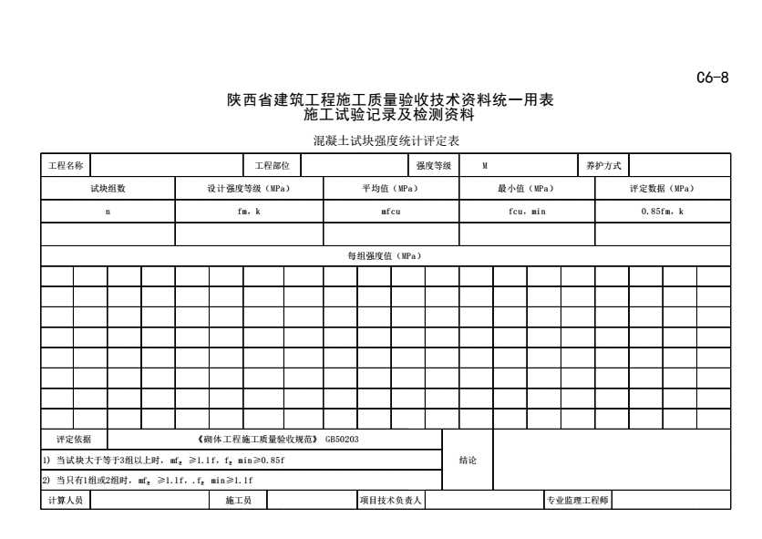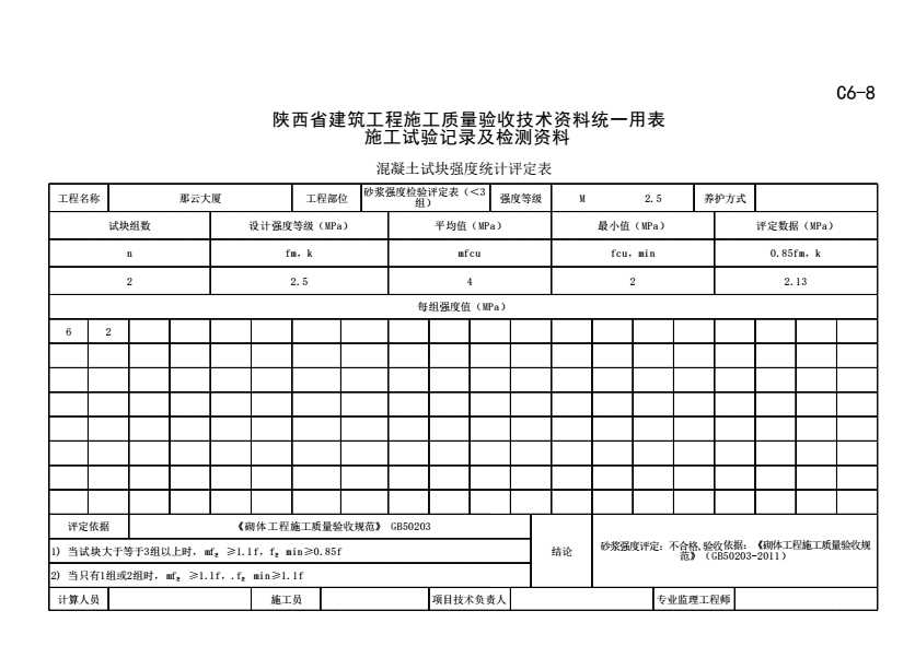 表格名称:C6-8 砂浆强度检验评定表(<3组)(1)