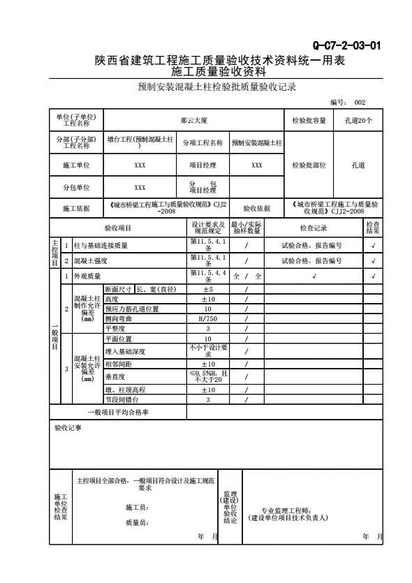 表格名称:Q-C7-2-03-01_预制安装混凝土柱检验批质量验收记录