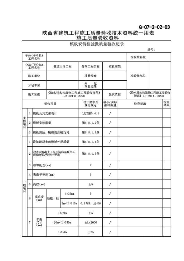 G-C7-2-02-03_模板安装检验批质量验收记录