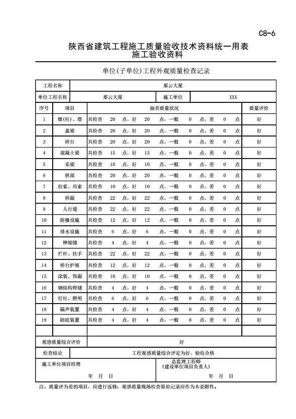表格名称:C8-6 单位(子单位)工程外观质量检查记录