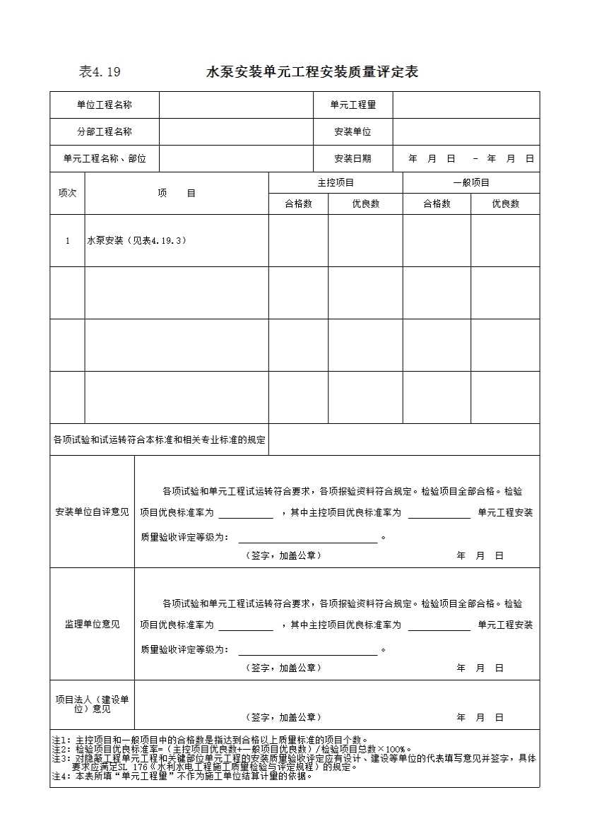 表格名称:表4.19 水泵安装单元工程安装质量评定表