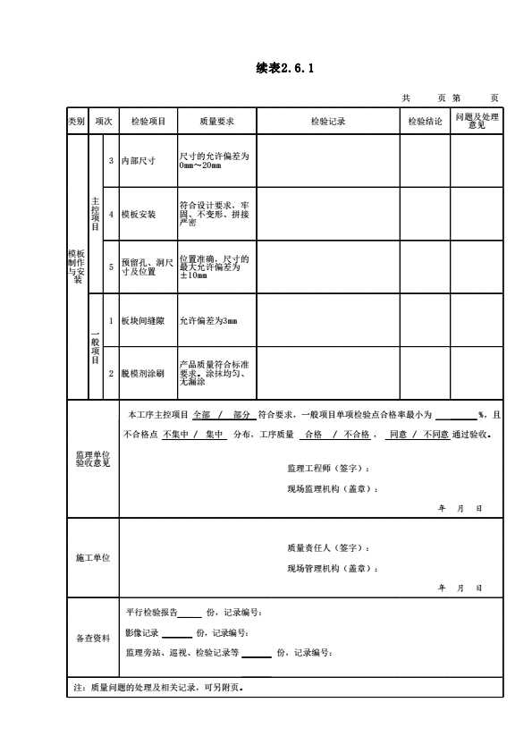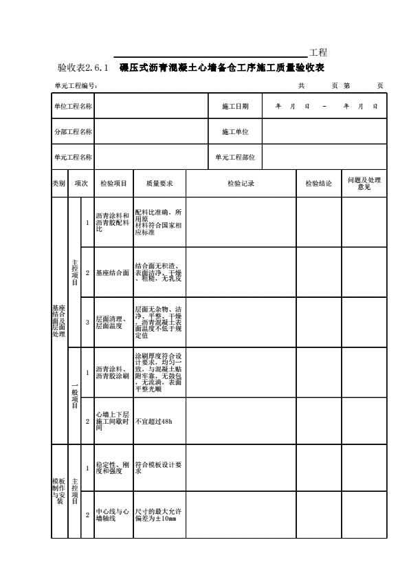 表格名称:表2.6.1 碾压式沥青混凝土心墙备仓工序施工质量验收表