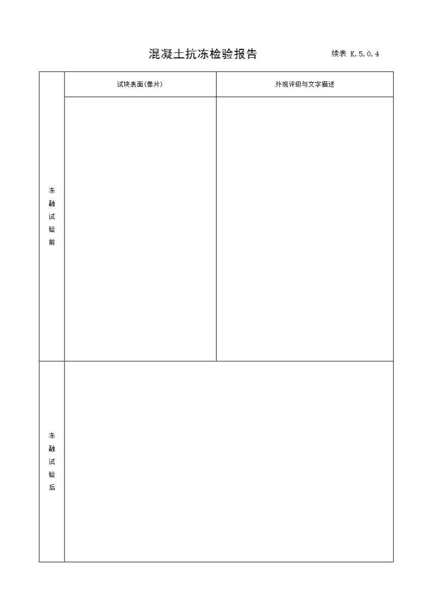 表格名称:表K.5.0.4 混凝土抗冻检验报告