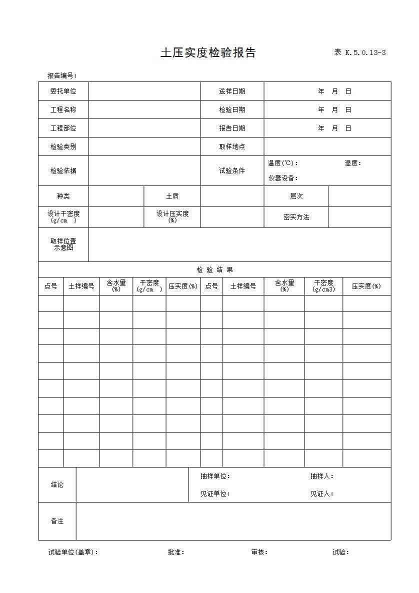 表格名称:表K.5.0.13-3 土压实度检验报告