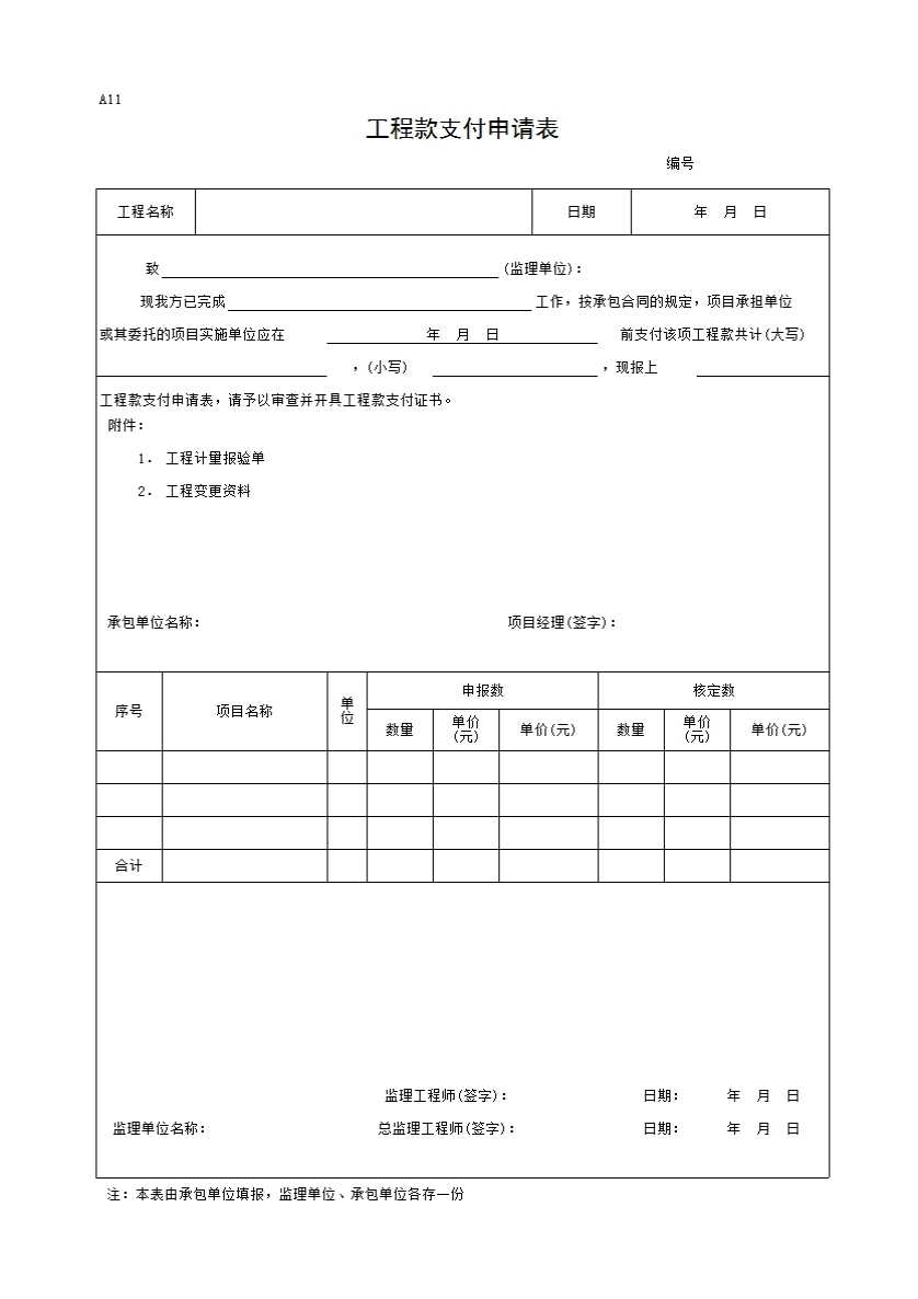 A11 工程款支付申请表