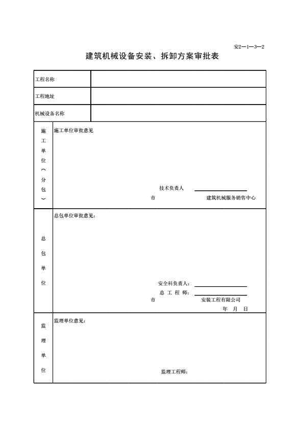 表格名称:建筑机械设备安装、拆卸方案审批报表 安2—1—3—2
