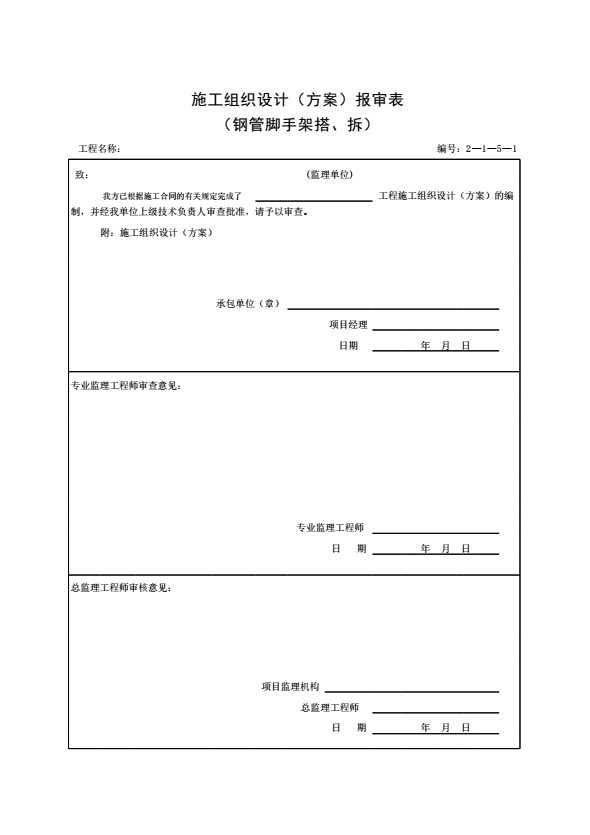 表格名称:施工组织设计(方案)报审表 (钢管脚手架搭、拆) 安2—1—5—1