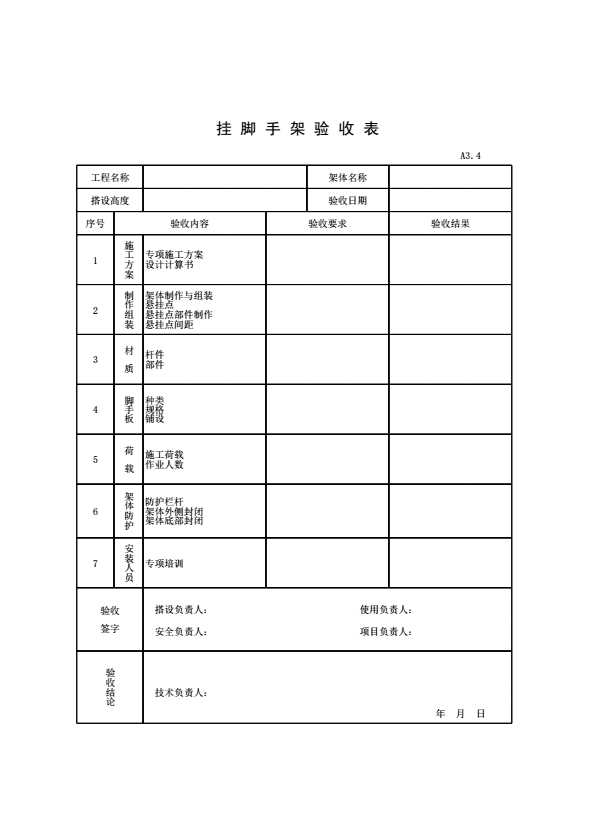 表格名称:挂脚手架验收表