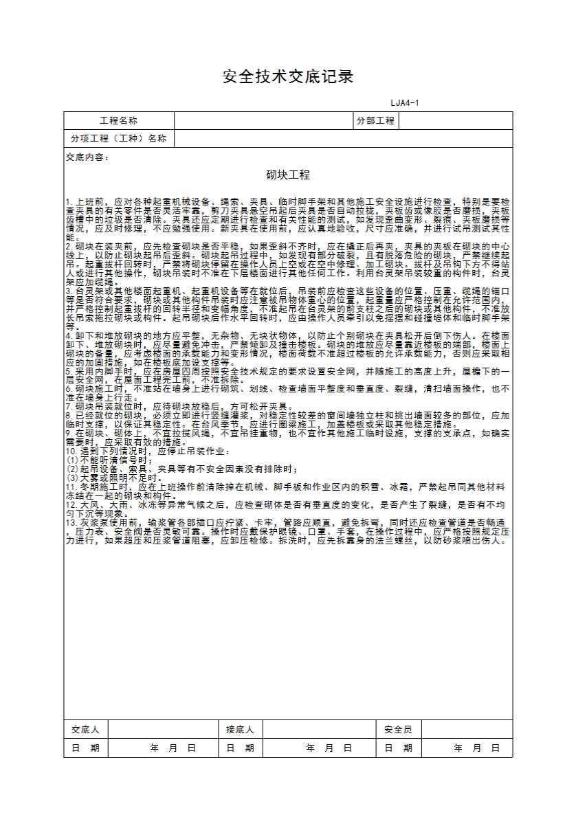 山东省建筑安全技术资料管理规程表格(鲁建管安监[1999]28号)