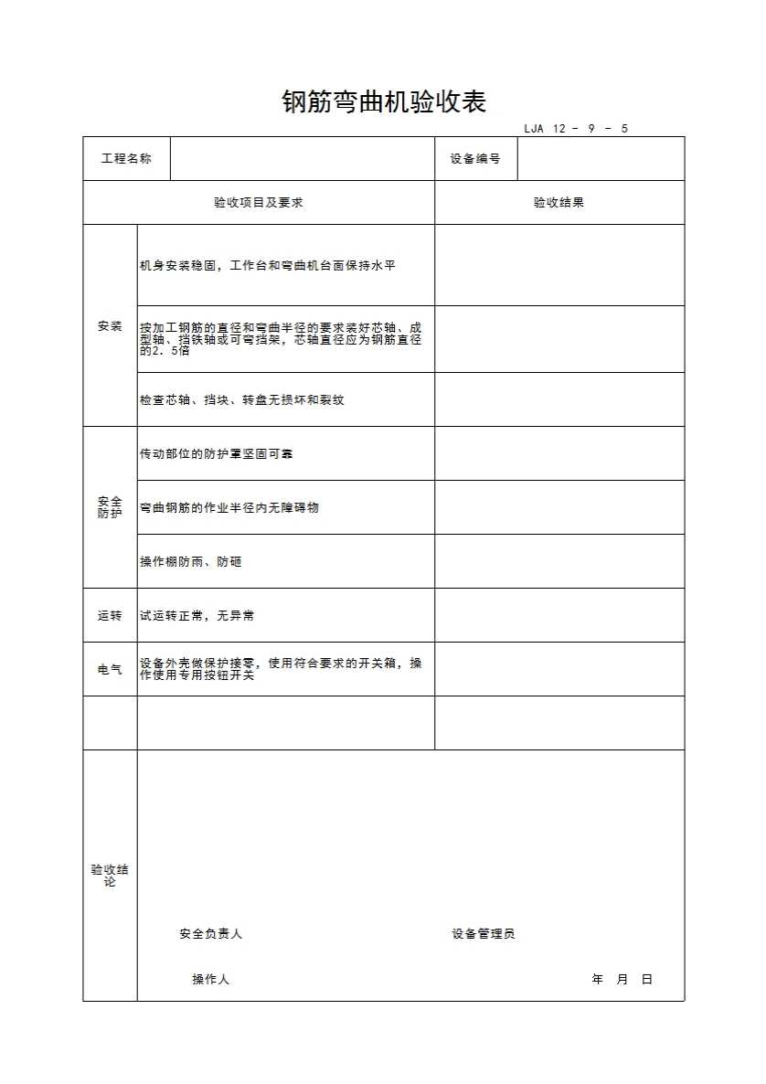表格名称:LJA12-09-05钢筋弯曲机验收表