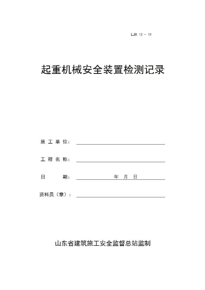 表格名称:LJA12-10-00起重机械安全装置检测记录