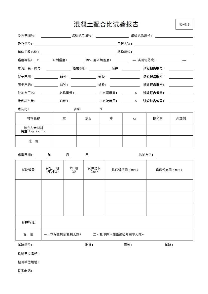 表格名称:混凝土配合比试验报告