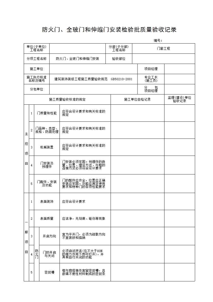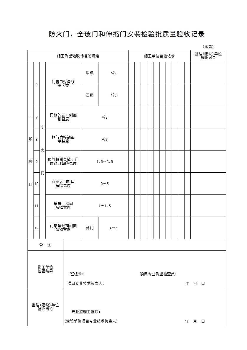 表格名称:防火门、全玻门和伸缩门安装检验批质量验收记录