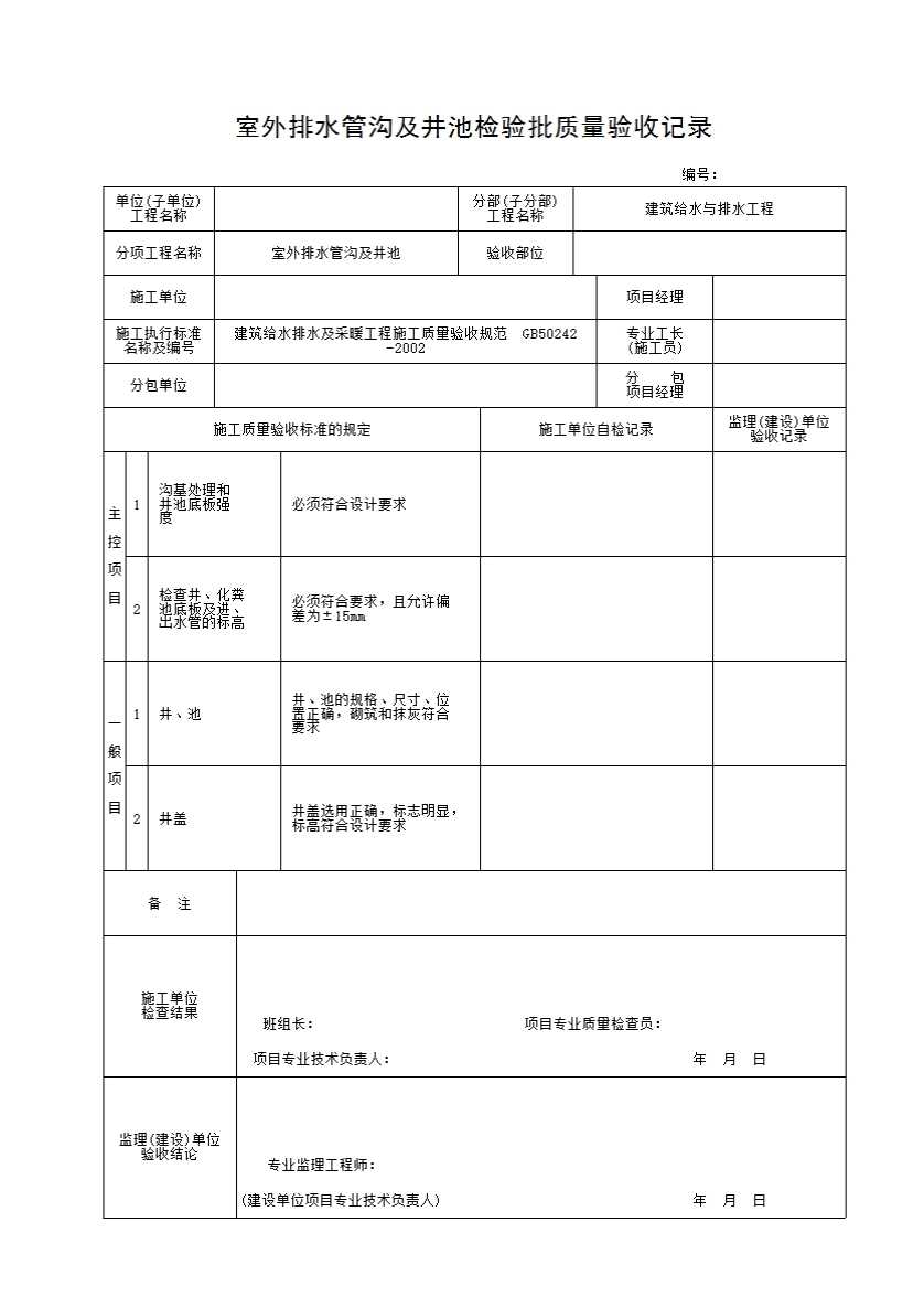 表格名称:室外排水管沟及井池检验批质量验收记录