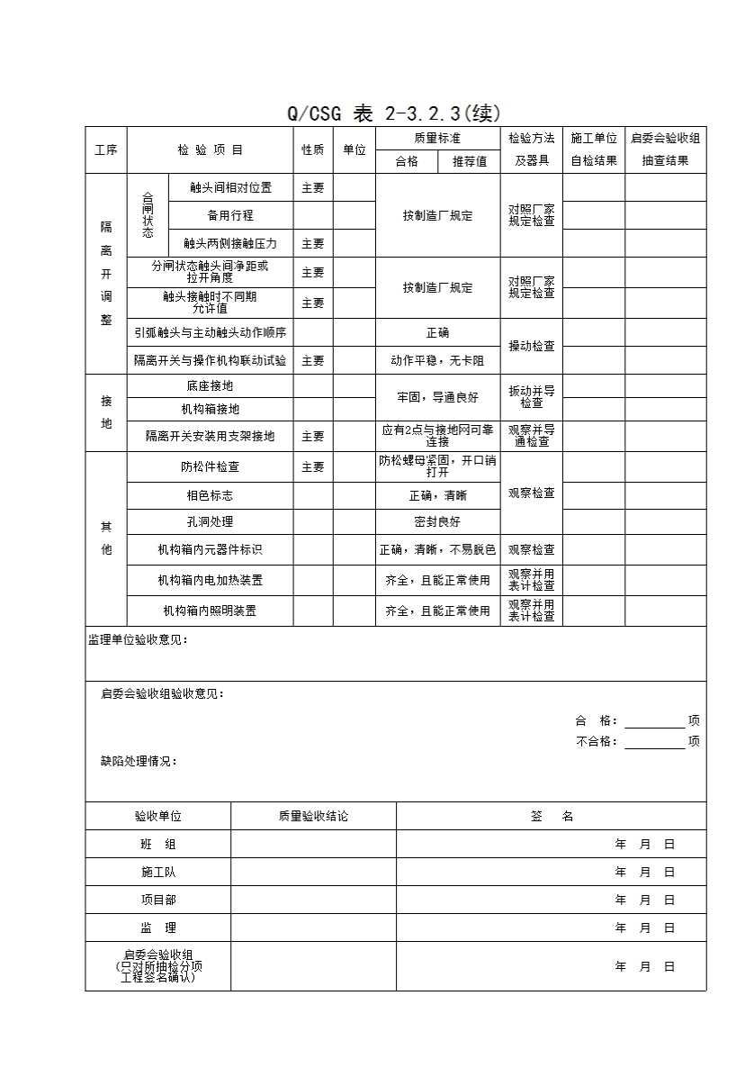 QCSG 表 2-3.2.3 隔离开关安装 分项工程质量验收记录表
