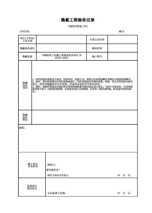 表格名称:隐蔽工程验收记录(钢构件组装工程)
