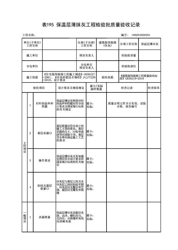 表格名称:100203020201 保温层薄抹灰工程检验批质量验收记录