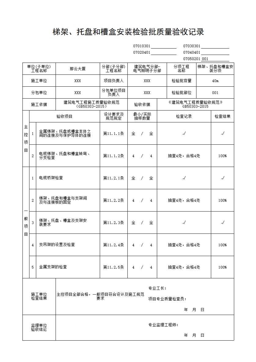07050201 梯架、托盘和槽盒安装检验批质量验收记录