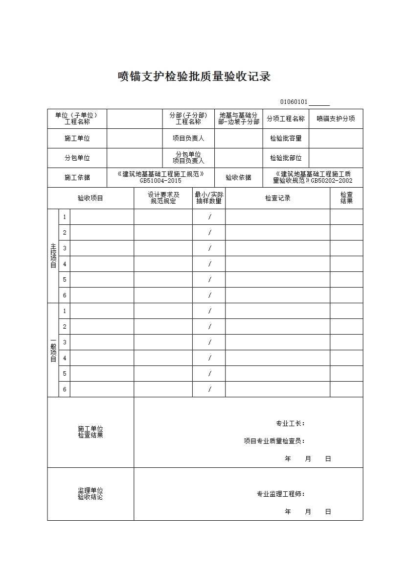 表格名称:01060101_喷锚支护检验批质量验收记录