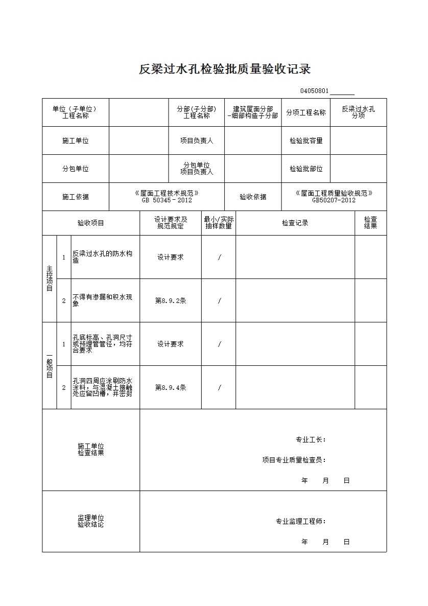 反梁过水孔检验批质量验收记录