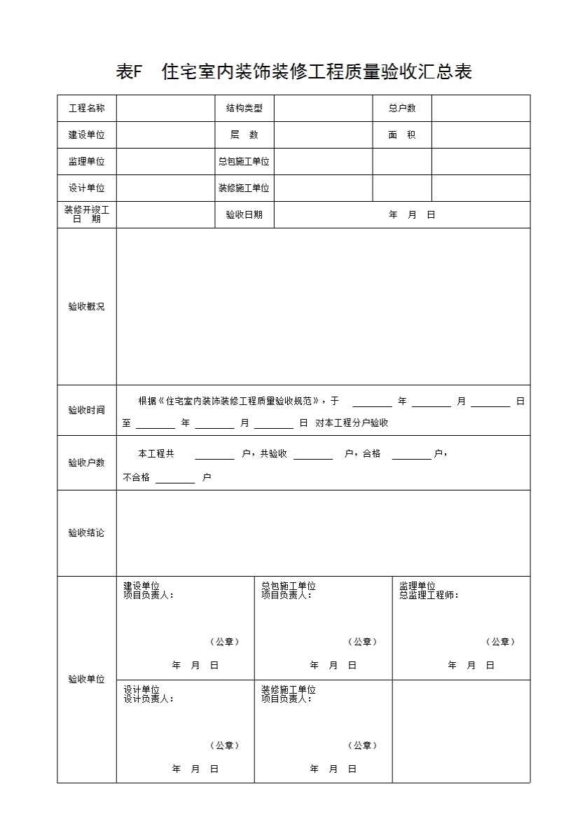 表格名称:表F 住宅室内装饰装修工程质量验收汇总表