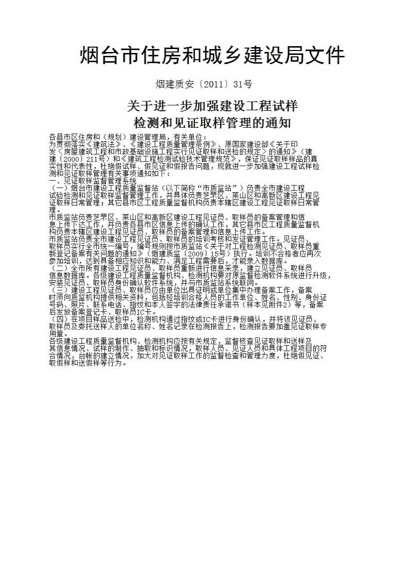 表格名称:烟台市加强建设工程见证取样管理的通知