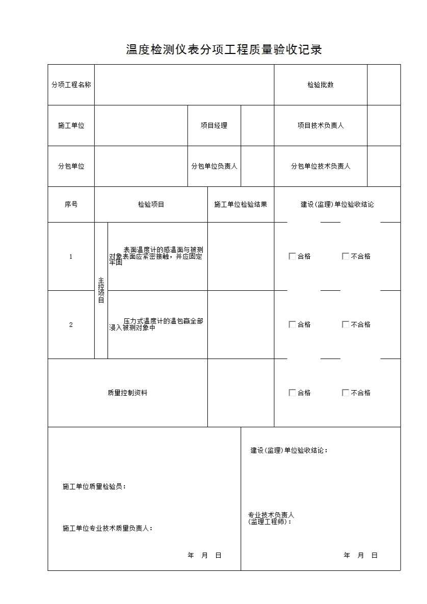 表格名称:3.3 温度检测仪表分项工程质量验收记录