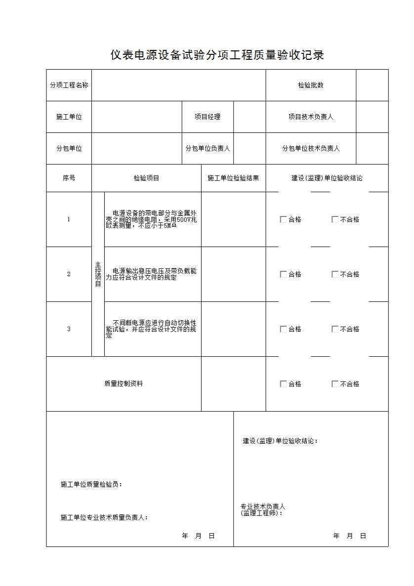 表格名称:9.3 仪表电源设备试验分项工程质量验收记录