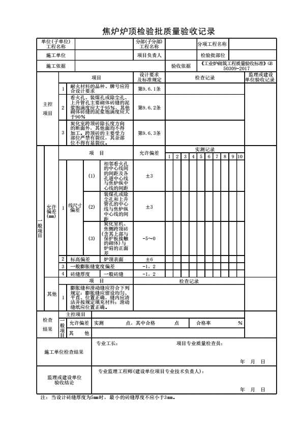 GB 50309-2017 工业炉砌筑工程质里验收标准