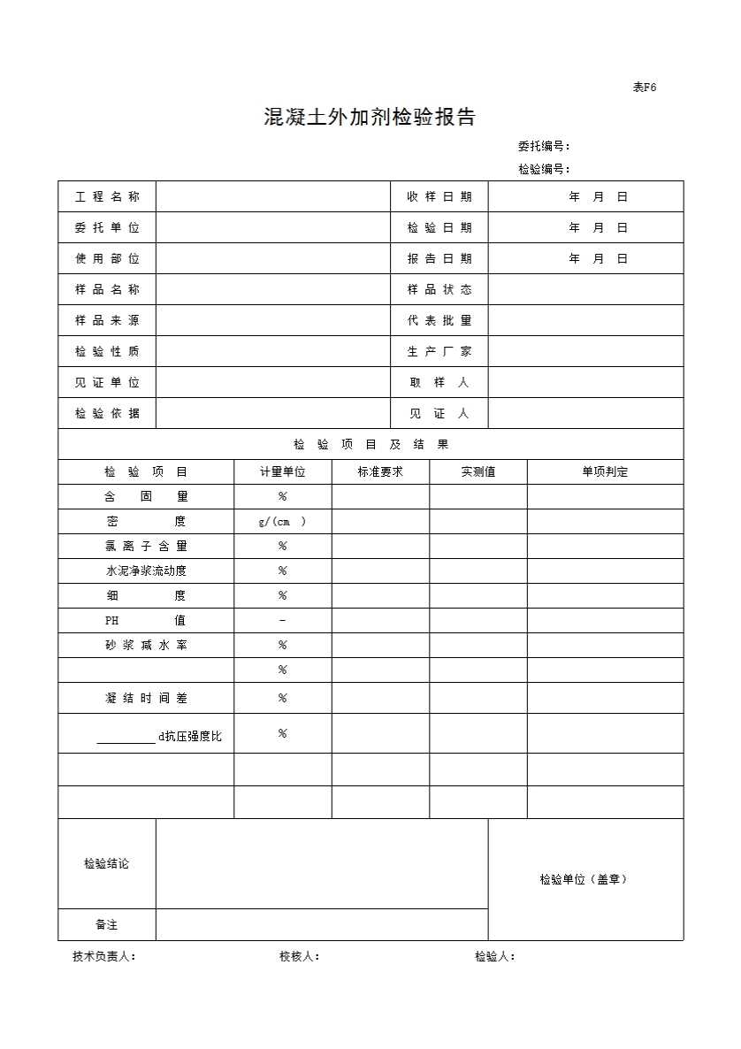 F类 原材料、半成品、构配件、设备进场检验及复检用表