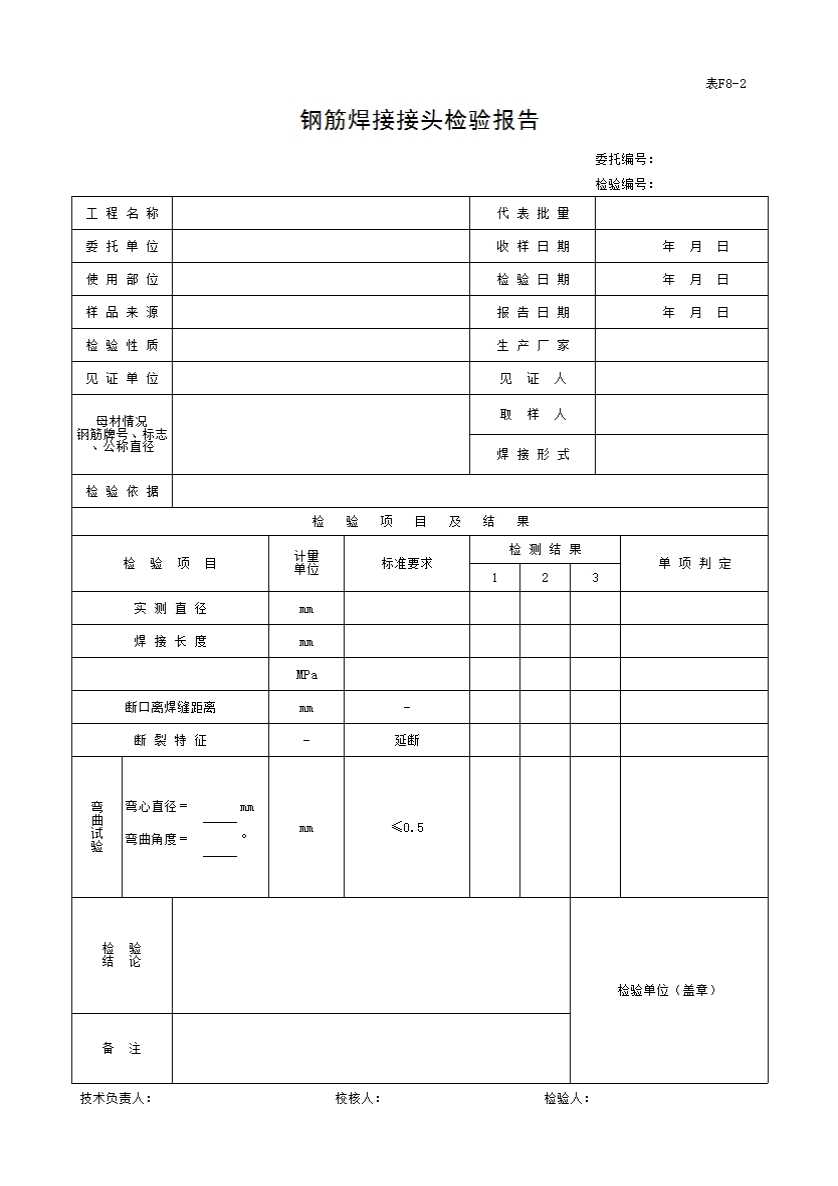 表格名称:表F8-2 钢筋焊接接头检验报告
