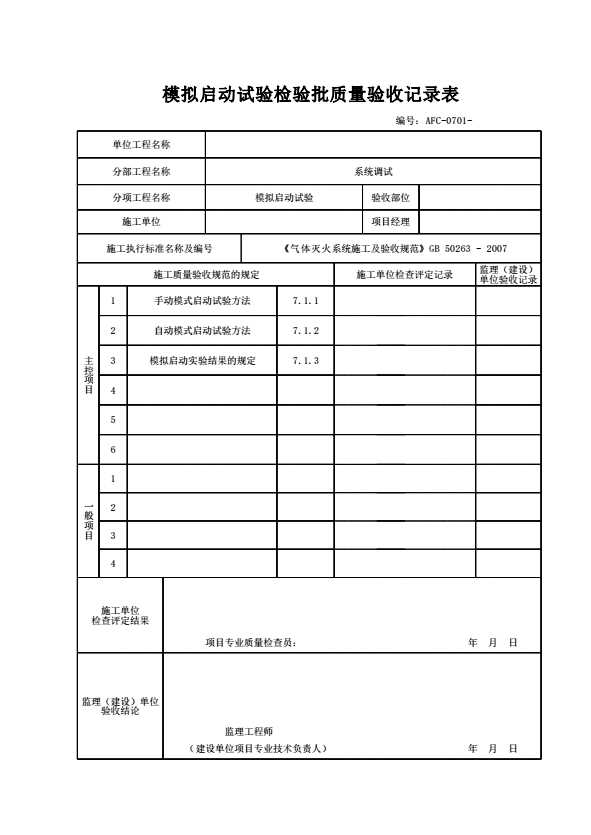 AFC-0701 模拟启动试验检验批质量验收记录表