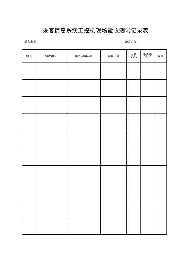 表格名称:乘客信息系统工控机现场验收测试记录表