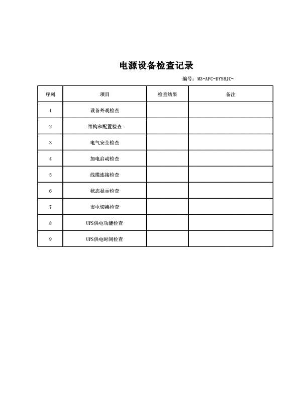 表格名称:M3-AFC-DYSBJC--电源设备检查记录