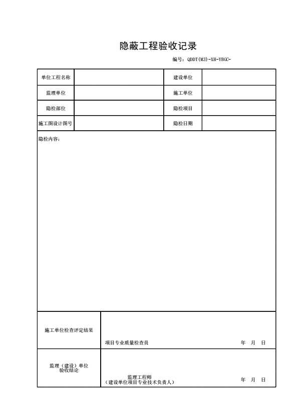 表格名称:隐蔽工程验收记录