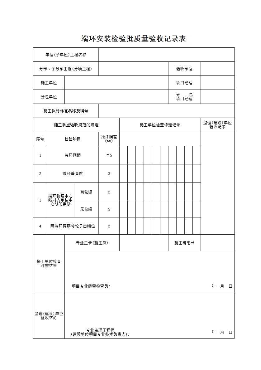 表格名称:端环安装检验批质量验收记录表