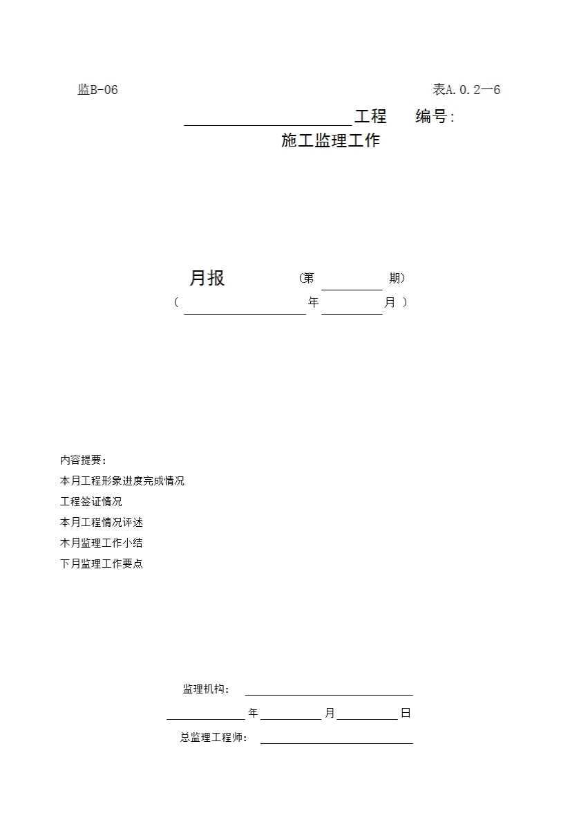 表格名称:表A.0.2-6 ____工程施工监理工作