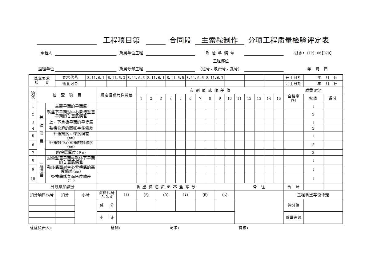 表格名称:078 主索鞍制作分项工程质量检验评定表