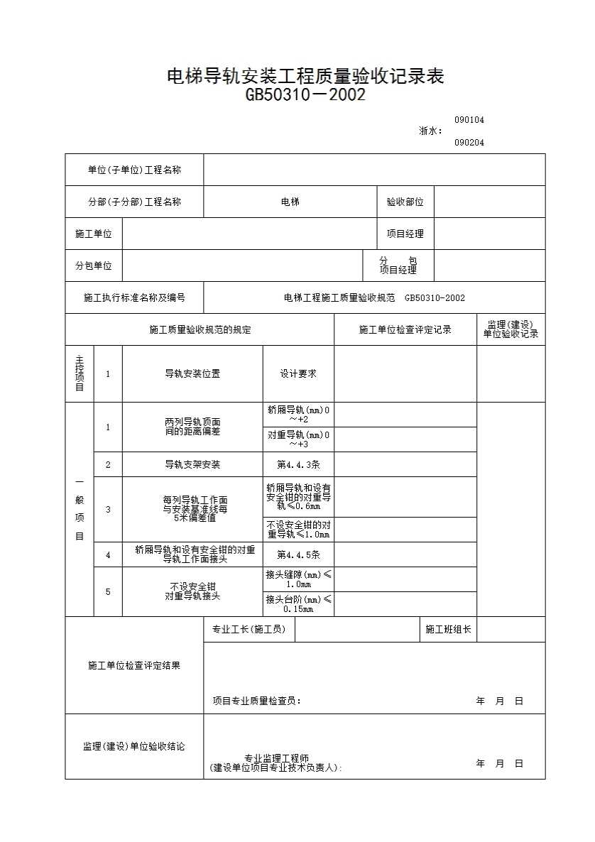 表格名称:230 电梯导轨安装工程质量验收记录表