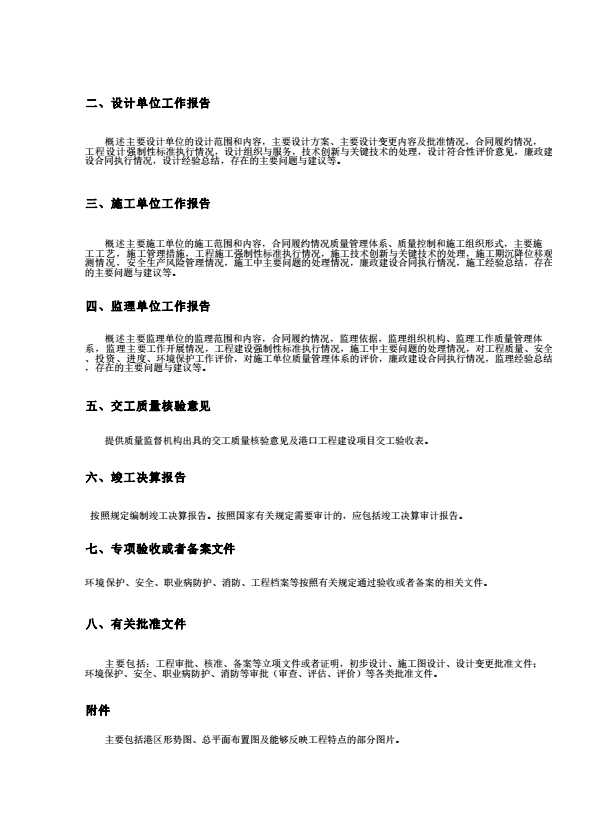 表格名称:附录E 港口工程建设项目竣工验收报告