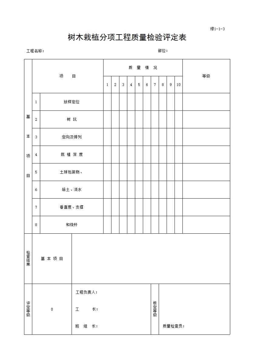 表格名称:绿1-1-3树木栽植分项工程质量检验评定表