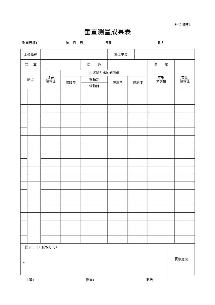 表格名称:A-11附件3垂直测量成果表