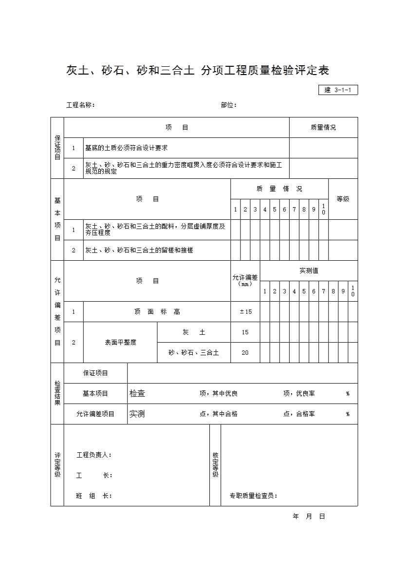 表格名称:灰土、砂石、砂和三合土分项工程质量检验评定表