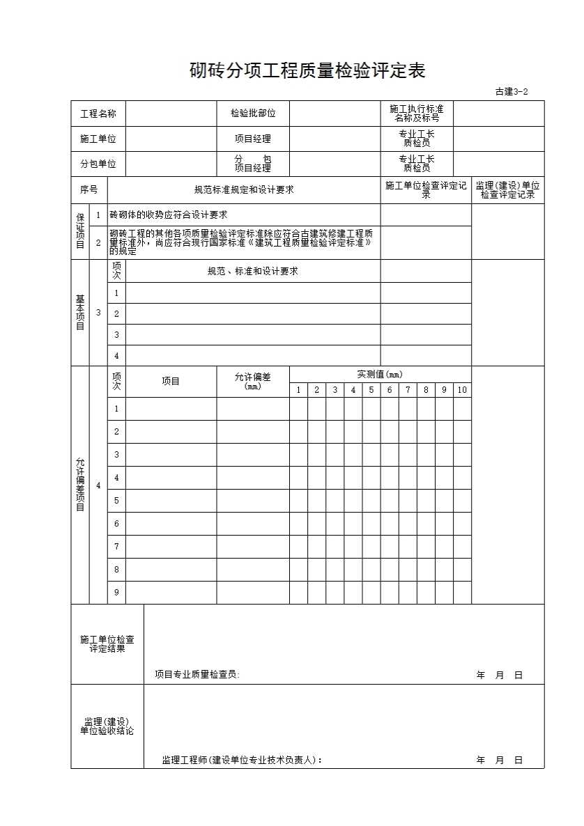表格名称:古建3-2 砌砖分项工程质量检验评定表