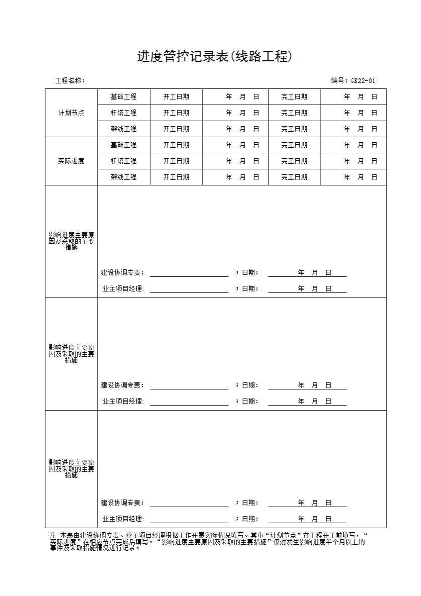 表格名称:进度管控记录表(线路工程)