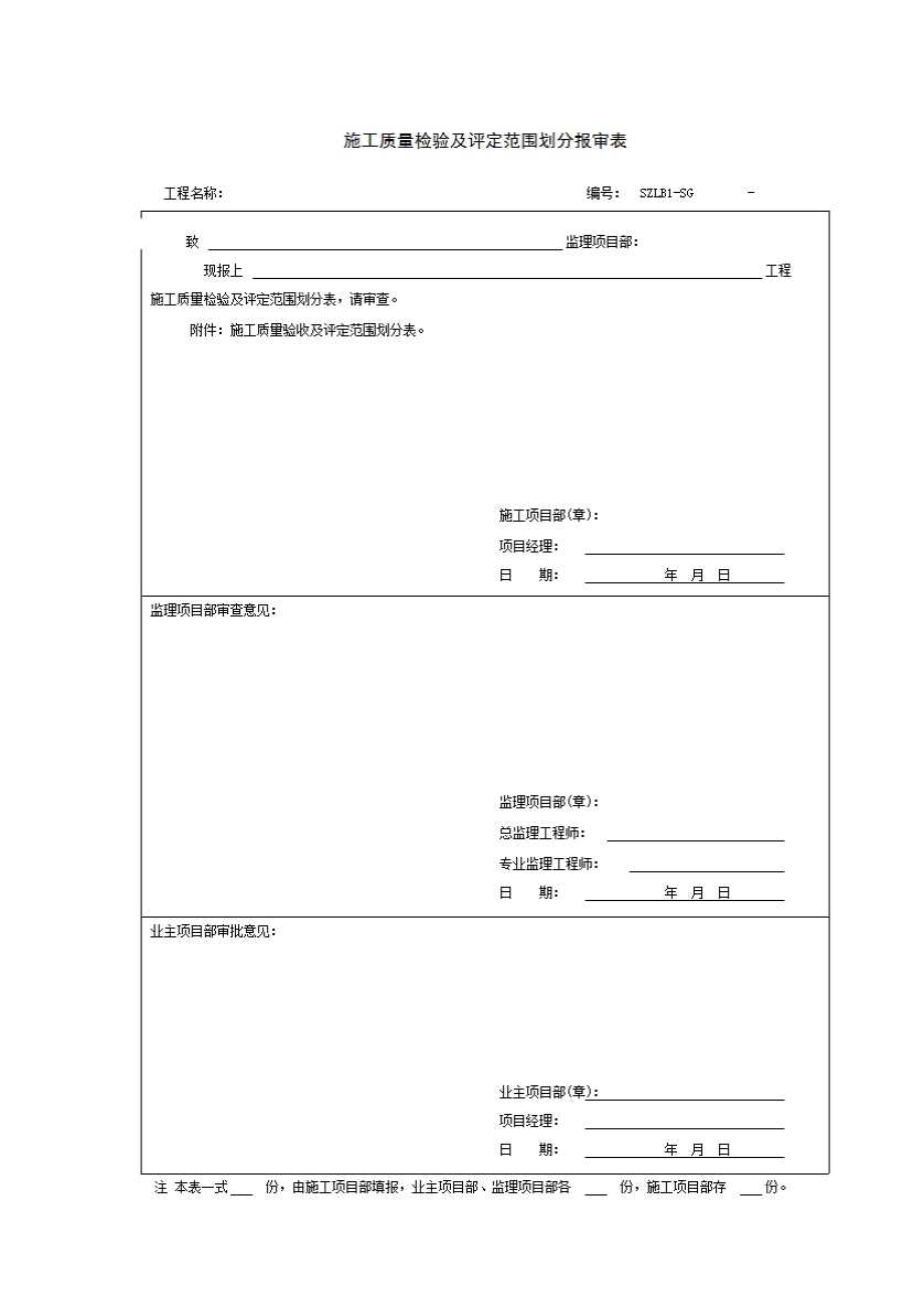 表格名称:SZLB1 施工质量检验及评定范围划分报审表
