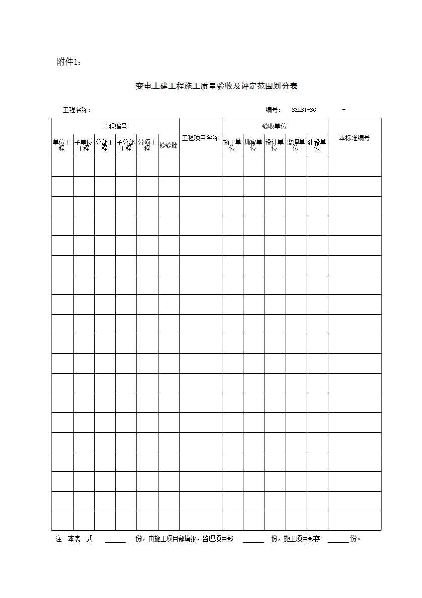 SZLB1 施工质量检验及评定范围划分报审表的附件1